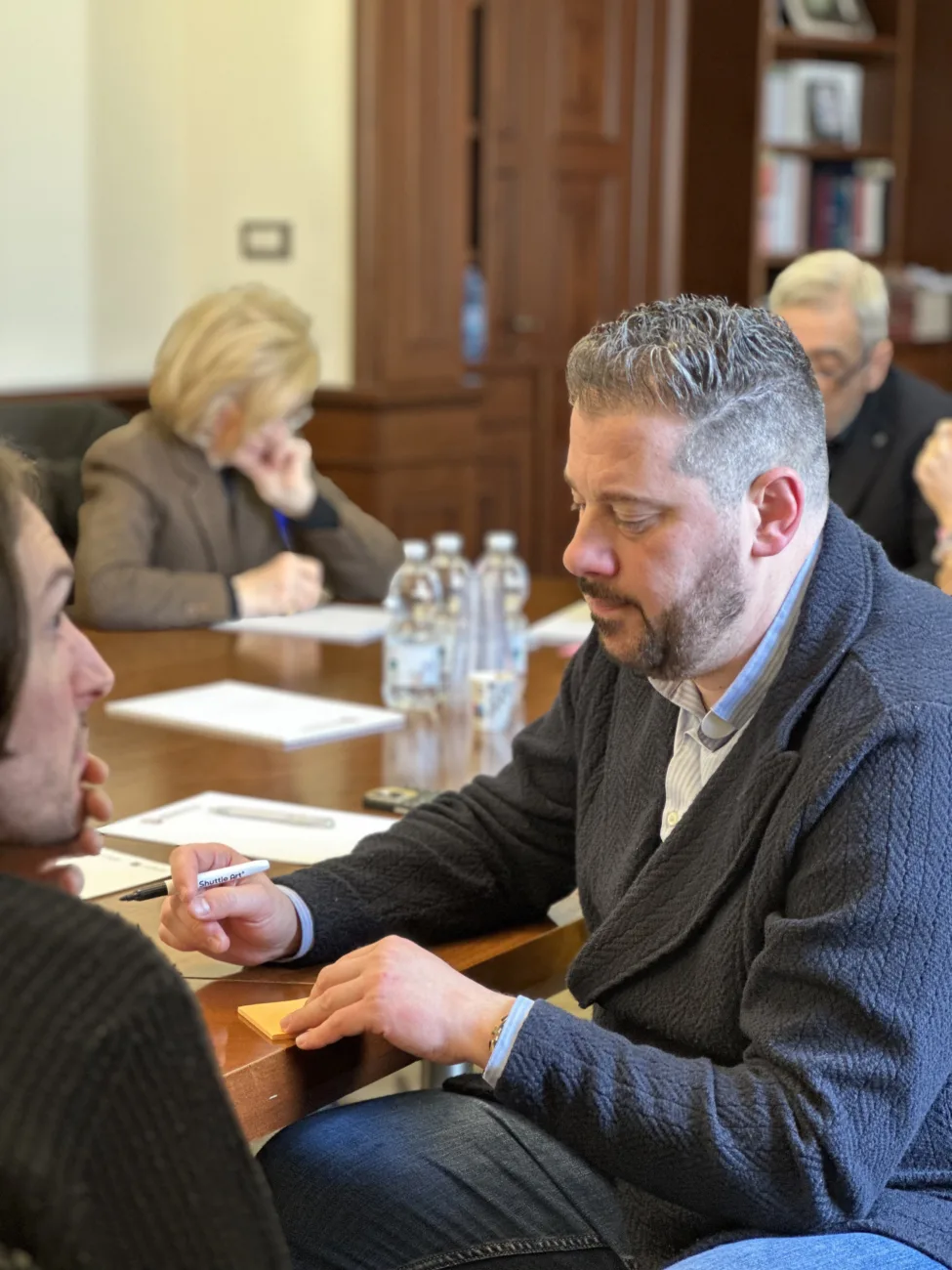 La prima giornata si apre con molta curiosità e qualche esitazione. Attorno al tavolo ci sono persone che abitano lo stesso territorio, quello di Fabriano, ma che raramente hanno simili occasioni di confronto: associazioni culturali, figure del mondo sociale e religioso e potenziali beneficiari delle iniziative della Fondazione. Non tutti si aspettano di trovare un ascolto così diretto. I loro interventi porteranno prospettive diverse sulla comunità e sulle sue trasformazioni.