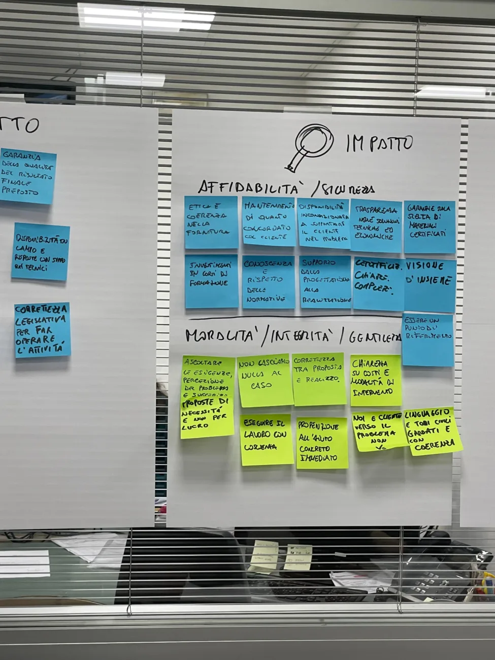 Attraverso due domande mirate, il terzo step serve a distinguere correttamente tra percezione, intenzione e realtà. Rispondendo alla prima domanda (Che impatto genera AerNova rispetto a quello che fa?) ognuno porta la propria prospettiva e, scoprendo quelle altrui, si riconosce in un’identità comune. Emergono così i primi criteri di un progetto comunicativo. In questa fase il facilitatore tiene il gruppo su esempi ed episodi concreti, limitando l’uso di concetti astratti: sono le azioni a rivelare i valori.