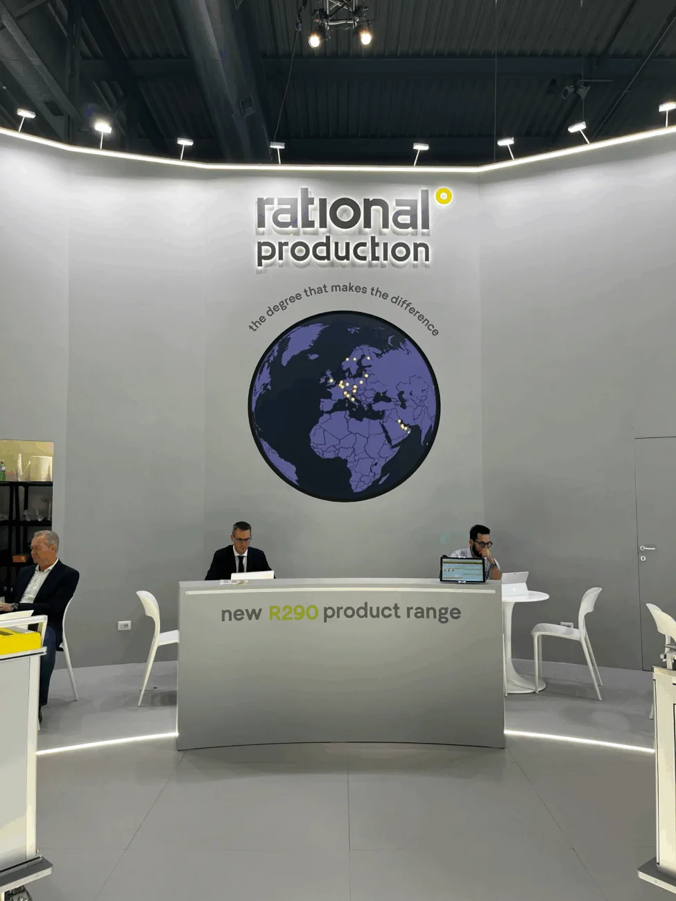 Nel caso di Rational Production, la collaborazione si manifesta nello stand, senza bisogno di aggiungere altro. Non c’è effetto, recita o trucco: il personale abita lo spazio con naturalezza.