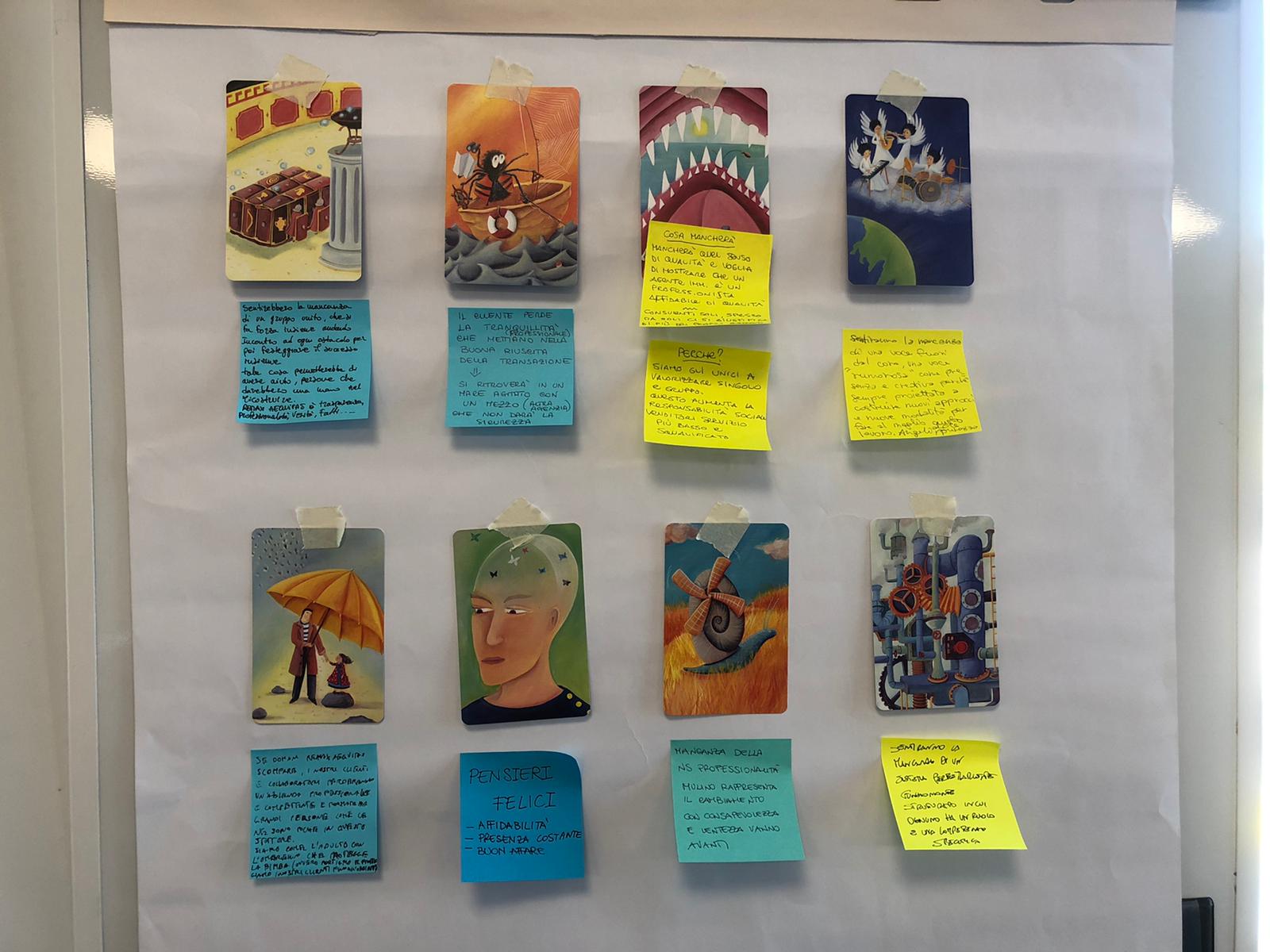 Ci è capitato spesso di impiegarlo nelle nostre attività di facilitazione e co-creazione perché raccontare una storia è il miglior modo per raccontare sé stessi. Lo abbiamo fatto con molte aziende ed ogni volta il peculiare stile di disegno delle carte genera delle risposte interessantissime.