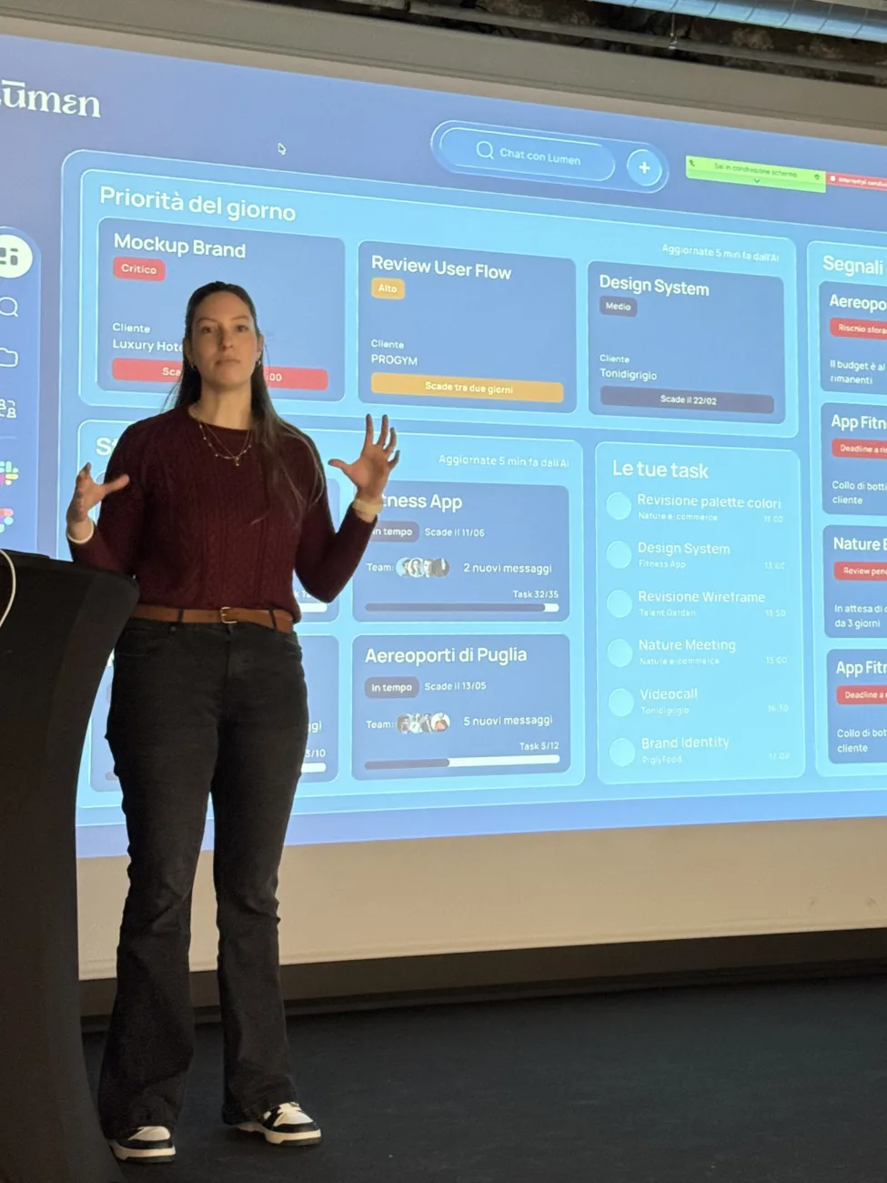Per noi la risposta è una sola: partendo dal lavoro quotidiano. Dai flussi interni, dalle call con i clienti, dalle complessità che attraversano i progetti ogni giorno. Ed è proprio da qui che nasce la challenge che abbiamo sviluppato per Talent Garden, coinvolgendo gli studenti dei corsi di UX e UI Design delle sedi di Milano e Roma.