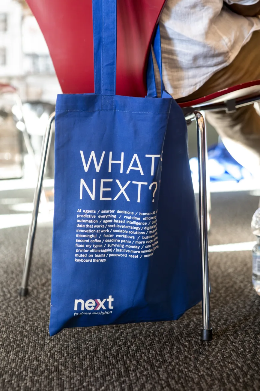 Questo primo appuntamento, dedicato al ruolo dell’Intelligenza Artificiale nei processi aziendali, è stato il risultato di un percorso costruito passo dopo passo, a partire dal concept ideato insieme al team di Next e seguito da Massimo (co-founder tonidigrigio) e Linda (visual designer tonidigrigio). In questa fase iniziale, tra brainstorming, confronto e ricerca di coerenza, si lavora fianco a fianco per dare all’evento un’identità precisa, capace di unire contenuti e visione.